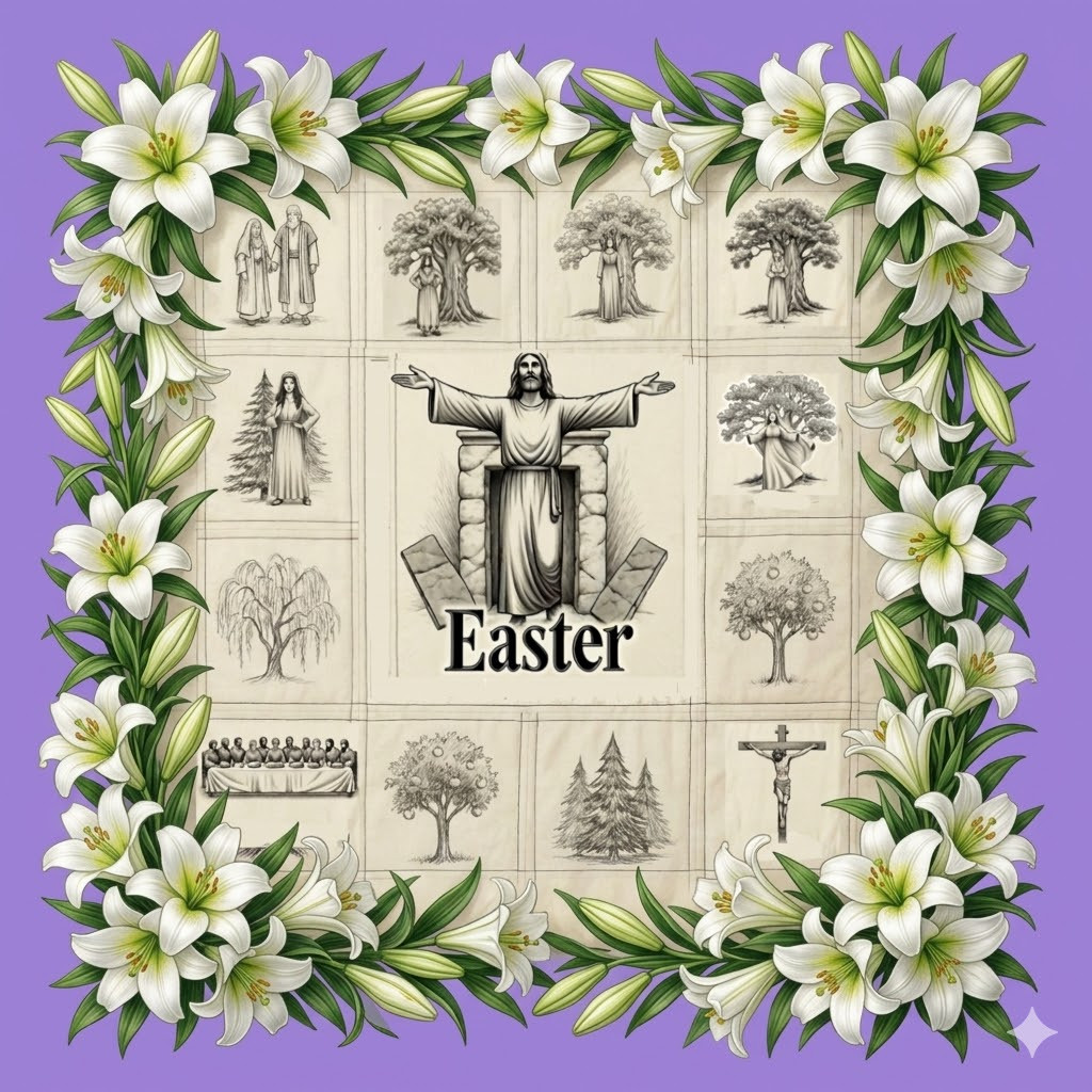 The tomb is empty! Angels proclaim: “He is not here; he has risen” (Luke 24:6). Christ conquers death, fulfilling every promise. The blanket unfurls in resurrection light—flawed threads now radiant. We are buried with Him in baptism, raised to new life (Rom 6:4). Dust becomes glory; shame becomes joy. The risen Jesus breathes life into generations, binding ancestors and us eternally. This Easter we rejoice: death has no sting. Grace weaves us into God’s family forever. Clothed in His righteousness (Isaiah 61:10), we live as resurrection people—still here, raised anew. Alleluia!