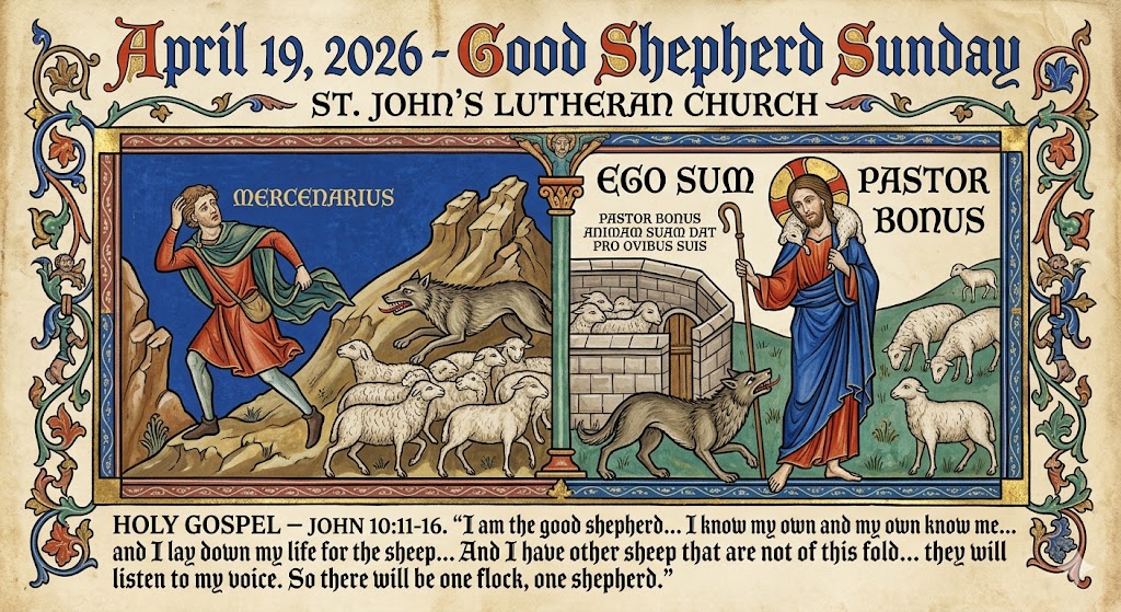 Today we rejoice that we are not left to fend for ourselves. We belong to the flock of the One who conquered death and now lives to care for us. In Word and Sacrament, He still speaks peace, feeds us with His own body and blood, and leads us in paths of righteousness for His name’s sake.